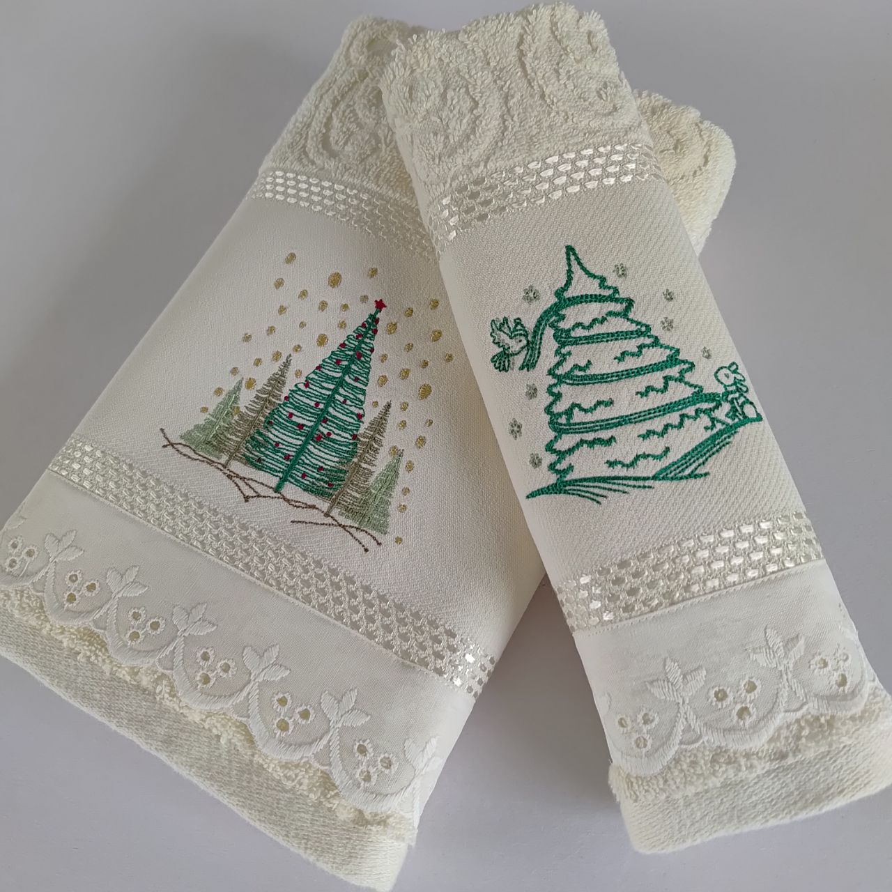 Esse jogo de toalhas de rosto e lavabo traz espírito natalino de forma delicada e sofisticada, com bordado minimalista e acabamento impecável. Perfeito para quem ama decoração natalina clean e refinada.